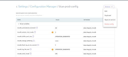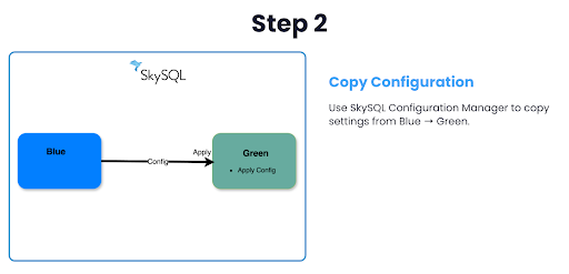 Once the green service is deployed, use the SkySQL Configuration Manager to: