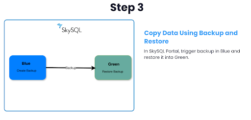This gives you a fresh, consistent copy of your production data in the green environment.